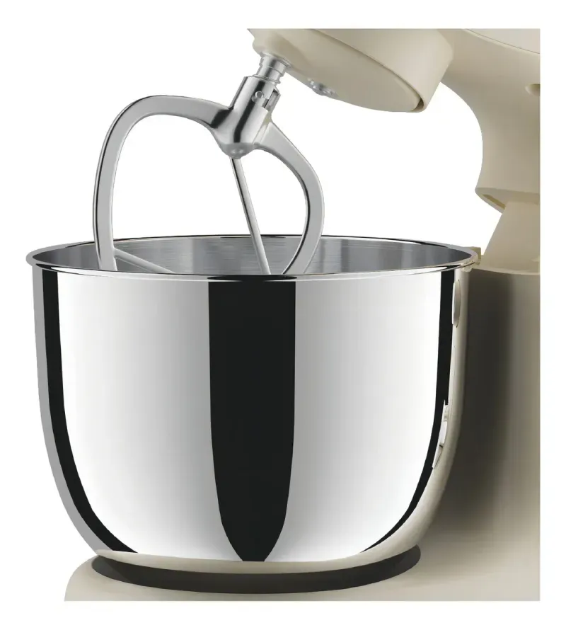 Gran Capacidad: Su bowl de acero inoxidable de 5 litros es ideal para preparar grandes cantidades de masa, desde bizcochuelos esponjosos hasta panes caseros.