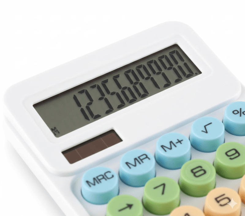 Pantalla LCD de Alta Claridad: Display inclinado para una visualización óptima de hasta 12 dígitos, facilitando la lectura sin reflejos molestos.