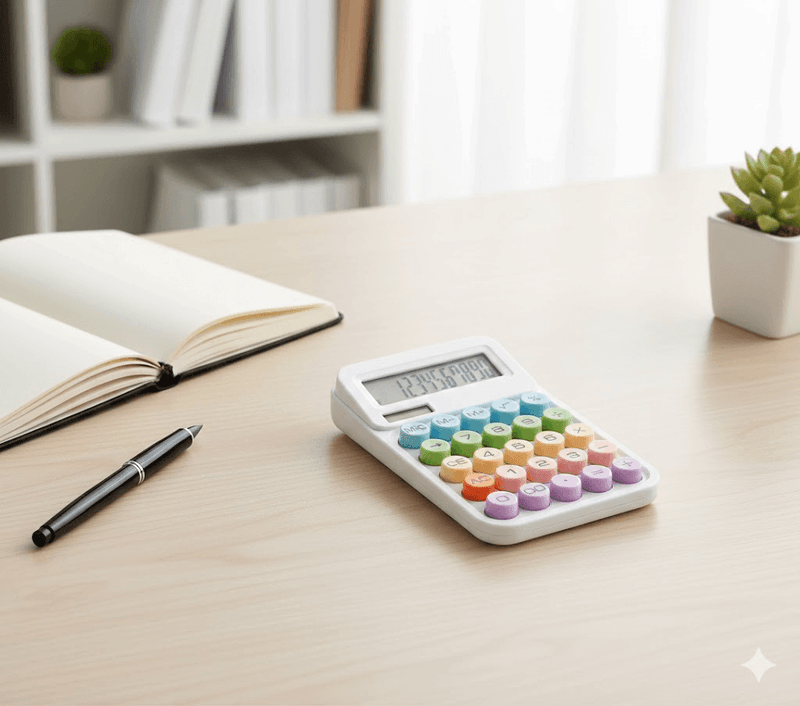 Dale un toque de color y eficiencia a tu espacio de trabajo! La calculadora SUONO Mod. ACC0183ROS combina un diseño retro-moderno con la precisión que necesitas para tus tareas diarias. Su acabado en color rosa pastel la convierte en el accesorio ideal tanto para oficinas como para estudiantes que buscan estilo y practicidad.