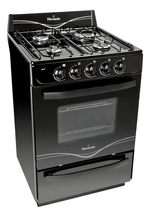 La valvulería de seguridad en hornallas y horno brinda mayor tranquilidad durante el uso, cortando el gas automáticamente si la llama se apaga. El cajón parrilla inferior permite almacenar utensilios o bandejas, optimizando el espacio en la cocina.
