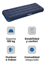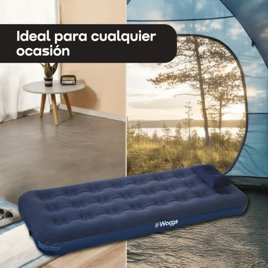 ¿Tenés invitados en casa o estás planeando una escapada al aire libre? El colchón inflable Waggs COLI01 es la solución ideal que combina comodidad, resistencia y practicidad en un solo producto. Diseñado para ofrecer un descanso reparador donde sea que estés, este modelo es un básico indispensable para el hogar o el camping.