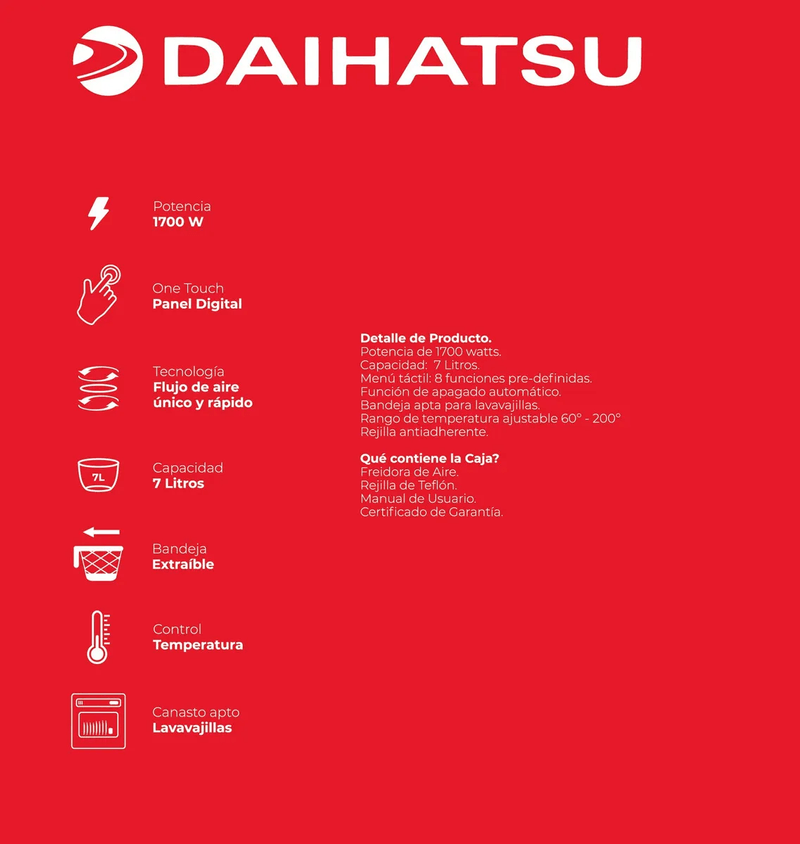 Freidora de Aire Digital Daihatsu 7L Natsuko – Cocina Saludable en Tamaño XL