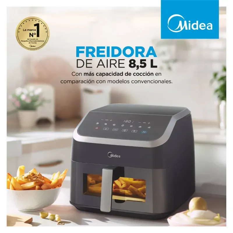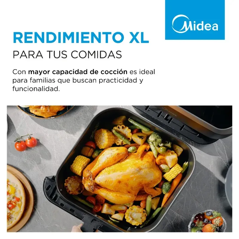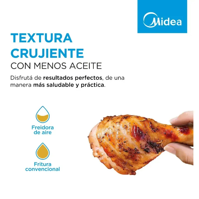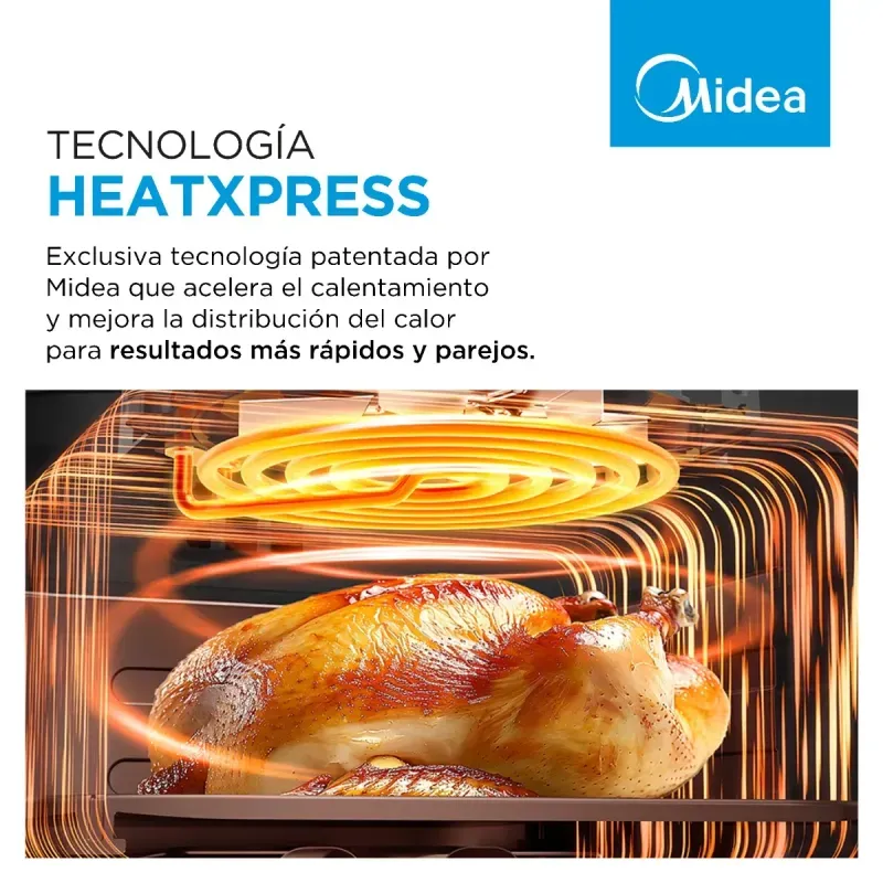 - Tecnología HeatXpress: Patentada por Midea que acelera el calentamiento y mejora la distribución del calor para resultados más rápidos y parejos.