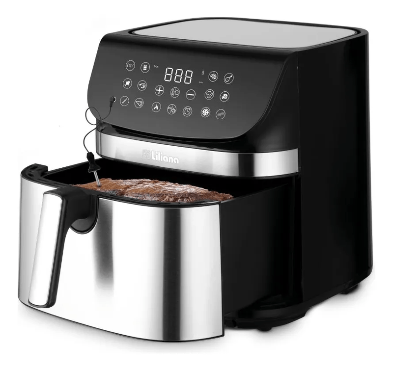Freidora de Aire DuoHeat de Liliana, la solución perfecta para una cocción inteligente, saludable y multifuncional en tu hogar! Con su tecnología de doble resistencia (inferior y superior) y panel digital con 12 programas predeterminados, este equipo te permite cocinar de manera uniforme y eficiente, obteniendo alimentos dorados y crujientes por fuera, pero tiernos y jugosos por dentro. Además, su parrilla metálica y función “shake” aseguran una cocción perfecta y sin esfuerzo. ¡Prepará tus platos favoritos con la calidad y versatilidad de Liliana!