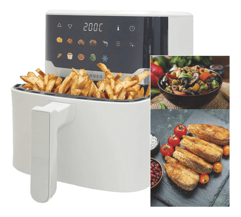 Cociná tus comidas favoritas de forma saludable sin renunciar al sabor! La freidora de aire Ranser Ravello combina una capacidad generosa con un diseño minimalista en color blanco que realza cualquier cocina. Gracias a su tecnología de circulación de aire de alta velocidad, podés freír, hornear y dorar con hasta un 80% menos de aceite.