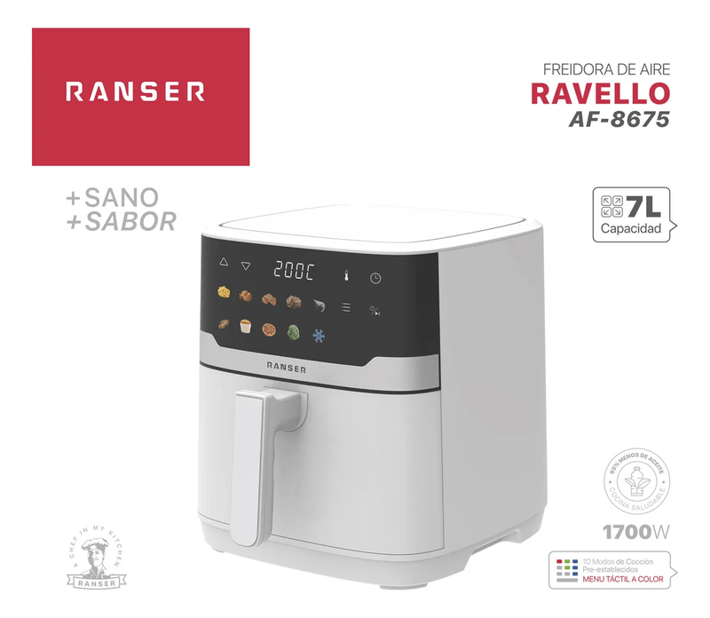 Freidora de Aire Digital Ranser 7L Ravello Blanca - Mod. AF-8675W