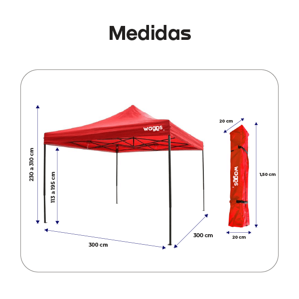 Altura mínima: 300 x 300 x 230 cm (113 cm alto interior).