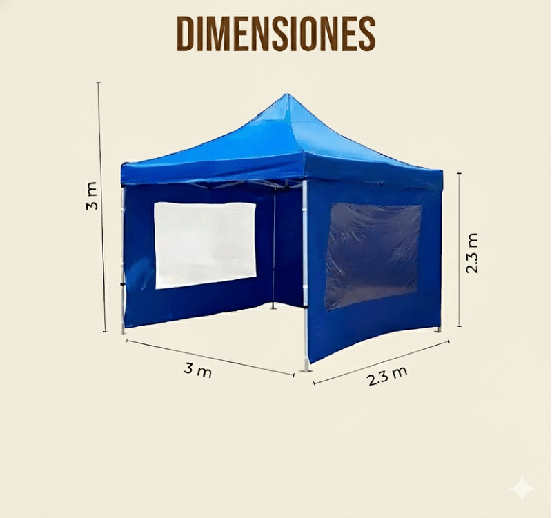 -Techo Impermeable: Lona de poliéster de alta densidad con tratamiento para repeler el agua y brindar sombra efectiva.