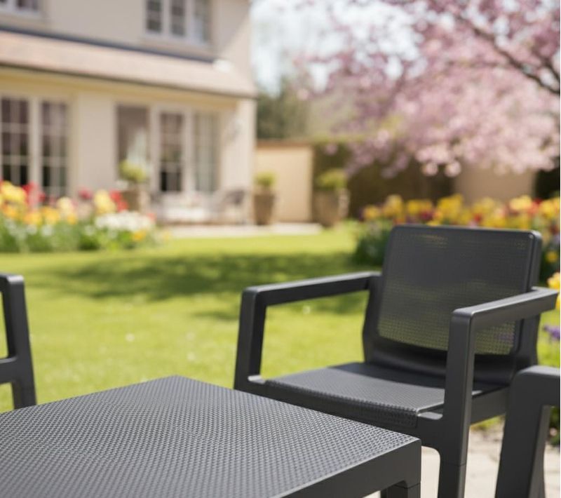 Construcción duradera, ideal para espacios exteriores . Liviano , fácil de limpiar y mantener .No se requieren de herramientas para su armado.