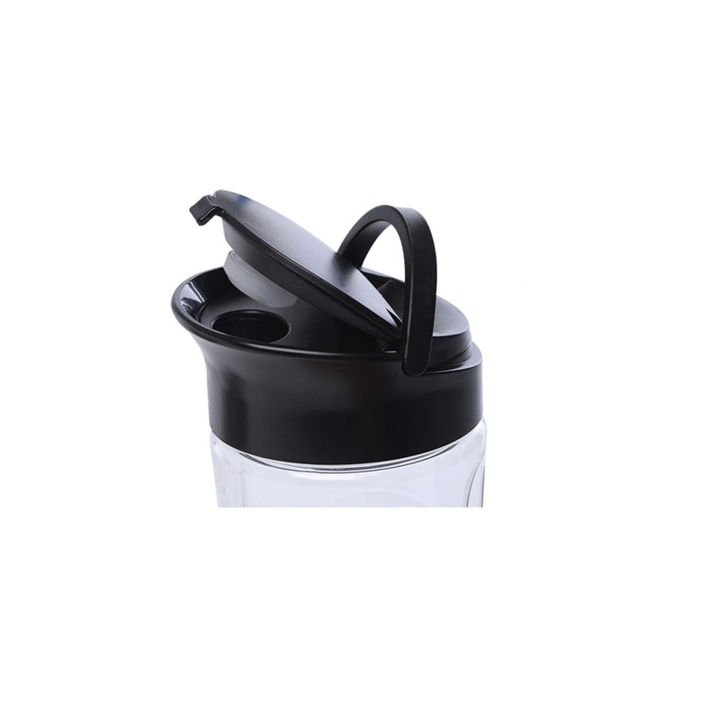 Vasos intercambiables: Jarra de vidrio de 1 litro de capacidad y botella portable de 600 cm³ ideal para uso deportivo o viajes.
