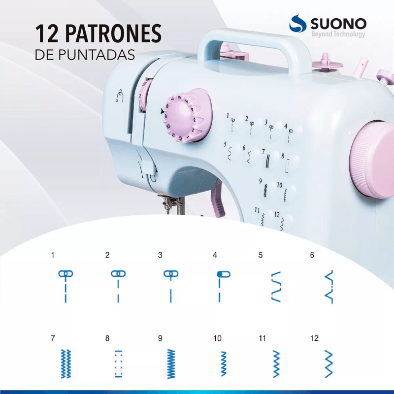 La SUONO HOG0093 es una máquina de coser compacta, ligera y sorprendentemente versátil. Diseñada tanto para quienes están dando sus primeros pasos en la costura como para quienes necesitan una herramienta portátil para reparaciones de último momento, esta máquina combina eficiencia con un diseño que ahorra espacio.