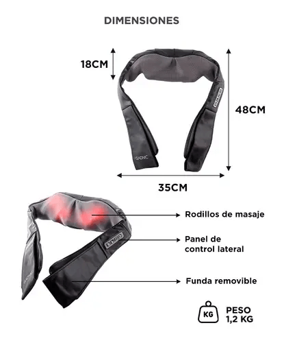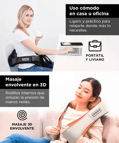 A diferencia de los modelos básicos de 4 nodos, este cuenta con 8 cabezales rotativos (4 por lado) de diferentes tamaños. Esto permite un masaje más completo que cubre una mayor superficie muscular, imitando el movimiento de "amasamiento" de un masajista profesional.