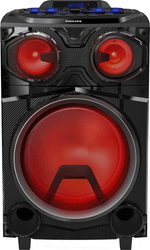 Convertite en el alma de la fiesta con la torre de sonido portátil Bluetooth. El parlante cuenta con funciones de karaoke, luces rítmicas y sonido poderoso con graves potentes. Podes conectarlo a un enchufe o usarlo con la batería integrada cuando estés afuera.