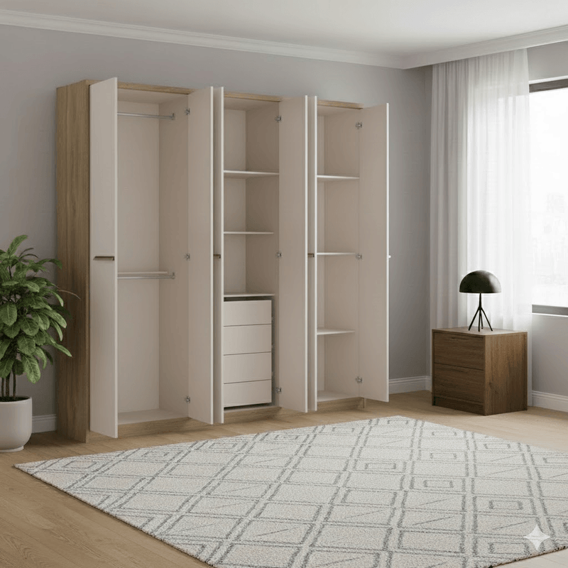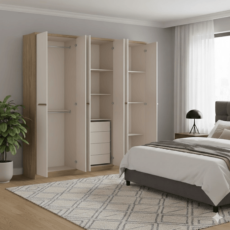 -Capacidad XL: Sus 6 puertas batientes esconden un interior espacioso dividido en sectores para colgado, estantes para ropa doblada y un amplio sector superior para ropa de cama (baulera).