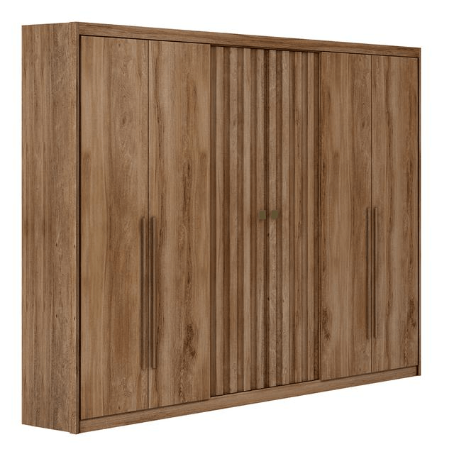 Fabricado en MDF de 15 mm con pintura UV de alta resistencia, este armario ofrece gran durabilidad y una estructura firme gracias a su rodapié reforzado. Sus 6 puertas de giro con bisagras metálicas y tiradores en ABS y MDF aseguran un uso cómodo y seguro.