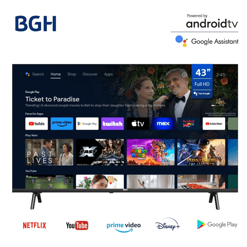 Cuenta con Netflix FHD, Disney+, Amazon Prime, Youtube FHD, Chromecast integrado y acceso al Play Store.